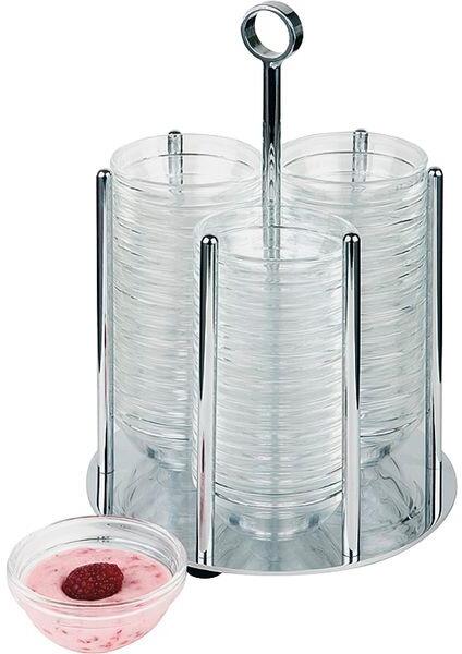 Az APS Mini krómozott tálkatartó 36 darab, 6 cm átmérőjű tálkához készült. Ideális lekvárok és dzsemek tálalásához. A tartó krómozott acélból készült. A tálkák nem részei a csomagnak. Az APS egy ismert konyhai felszereléseket gyártó vállalat, amely strapabíró eszközökre és kiegészítőkre specializálódott profi és otthoni szakácsok számára.