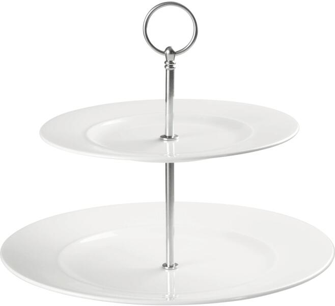 A Churchill Alchemy Plate Towers kétszintes tálalóállvány ideális desszertek, gyümölcsök vagy sós finomságok tálalásához. Kiváló minőségű fehér porcelánból készült. A tálalóállvány átmérője 280 mm, magassága 220 mm. A felső tányér átmérője 217 mm, az alsó tányéré 280 mm. Alkalmas otthoni és professzionális használatra.