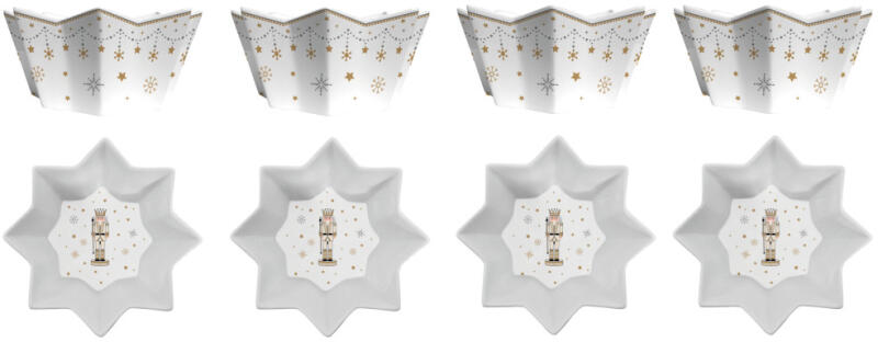 A(z) Royal Nutcracker karácsonyi porcelán 4db-os tálka szett, díszdobozban egy stílusos és igényes darab porcelán anyagból készült , mérete: 11cm . A termék a(z) Easy Life Nuova R2S márka kínálatából származik , eredeti származási helye: Olaszország.