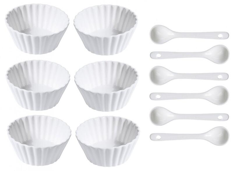 Excellent Houseware Porcelán tálak készlet kanállal 12 db hullámos keskeny tálakkal (1211)