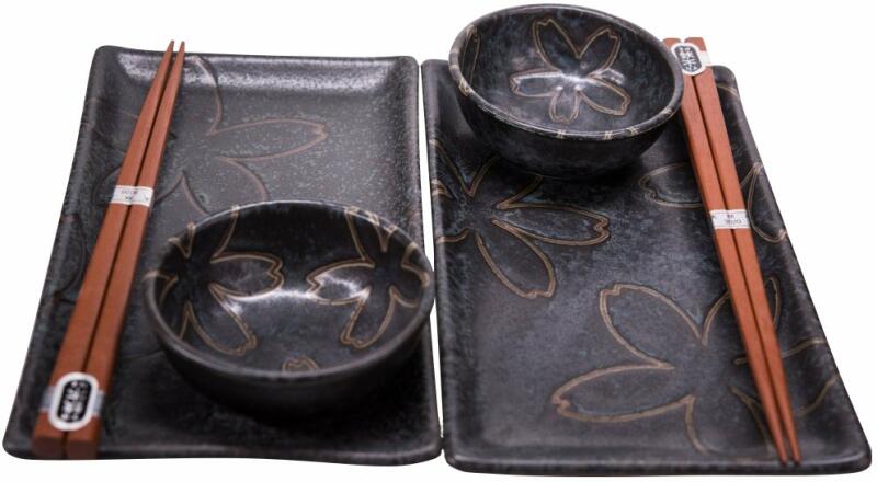 Made In Japan Sushi set virág motívummal fekete 6 db (MIJC0304)