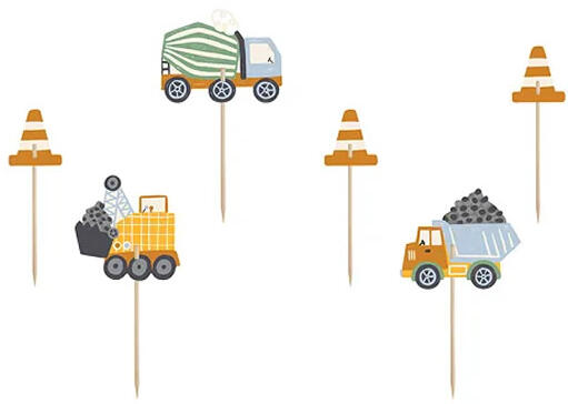 PartyDeco S. r. o Muffin jelölő, papír, építős járművek, 6 db/cs