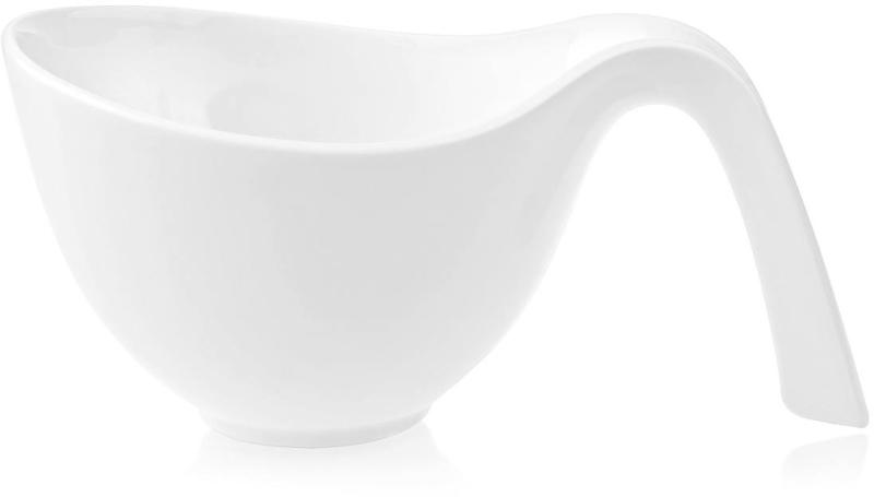 Füles tálka desszertekhez, leveshez és ropogtatnivalókhoz Az elegáns és letisztult Flow termékcsalád kiváló minőségű prémium finomporcelánból készült. A kollekció minden tagja egyforma, egymással harmonizáló bársonyosan fehér színű, így bármilyen alkalomhoz tökéletes miliőt teremtenek az étkezőben. A család szinte minden tagja merészen ívelt, dinamikus megjelenésű, mely egyszerre modern és kifinomult hatást kelt. A Flow 0,33l-es füles tálkája a fenséges terítékek látványos eleme. Ebben a tálkában a zamatos levesektől kezdve, a friss salátákon és kompótokon át egészen az esti filmhez kínált ropogtatnivalókig, szinte mindent felszolgálhat. A nyelénél fogva könnyen áthelyezhető, így nagyobb vendégség esetén akár csalamádé és szószok számára is remek választás. Élvezze a sokoldalúan használható porcelánok szépségét minden alkalommal!